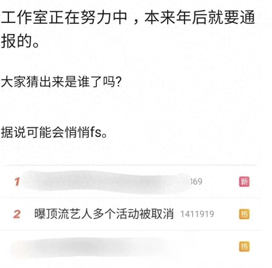 最初爆料并未点名道姓,仅以“顶流”代称。