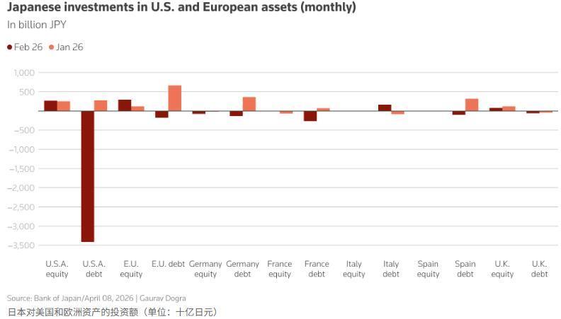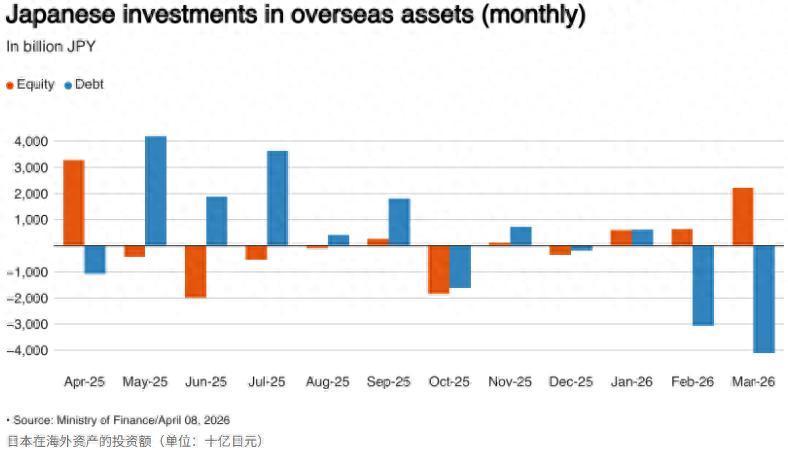 与此同时,当地投资者还卖出了价值 4.12 万亿日元的外国债券,这是自 2024 年 10 月净减持 4.13 万亿日元以来最大的单月净卖出额。