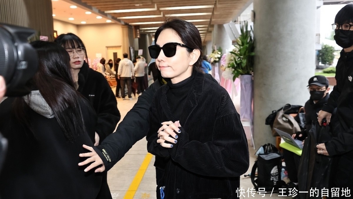 她戴着口罩,穿着一身黑衣在袁惟仁的告别仪式上现身了。